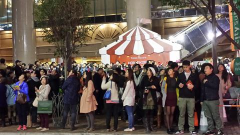 | Hồng Kông sẽ giảm 20% lượng khách du lịch đến từ Trung Quốc đại lục (Ảnh chụp khách du lịch chờ đợi giây phút đếm ngược trong đêm Giáng sinh tại Quảng trường Thời đại ở Hồng Kông) |