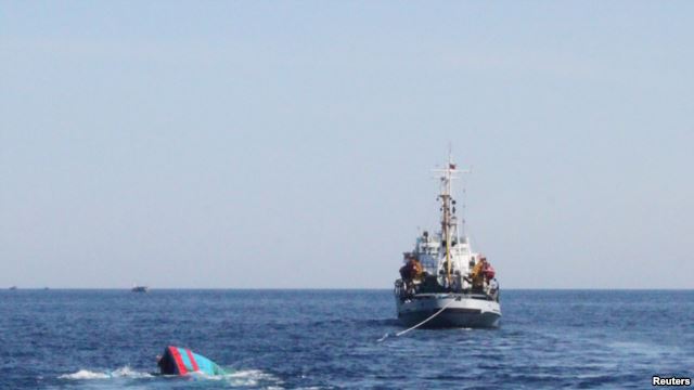 Lai dắt tàu cá của ngư dân Việt Nam bị tàu Trung Quốc đâm chìm gần Hoàng Sa
