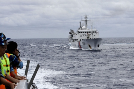 Ngay lúc đó, các tàu hộ tống giàn khoan Hải Dương -981 như 03 tàu Hải cảnh 3383, 45102, 13 Hải giám 2168 tàu kéo 263 và Haishan của Trung Quốc hung hăng tăng tốc tìm cách đâm, húc vào các tàu Việt Nam. Trước sự hung hăng của tàu Trung Quốc, lực lượng thực thi pháp luật trên biển của Việt Nam đã cho tàu ở vị trí cách giàn khoan hạ đặt trái phép khoảng 13 hải lý.